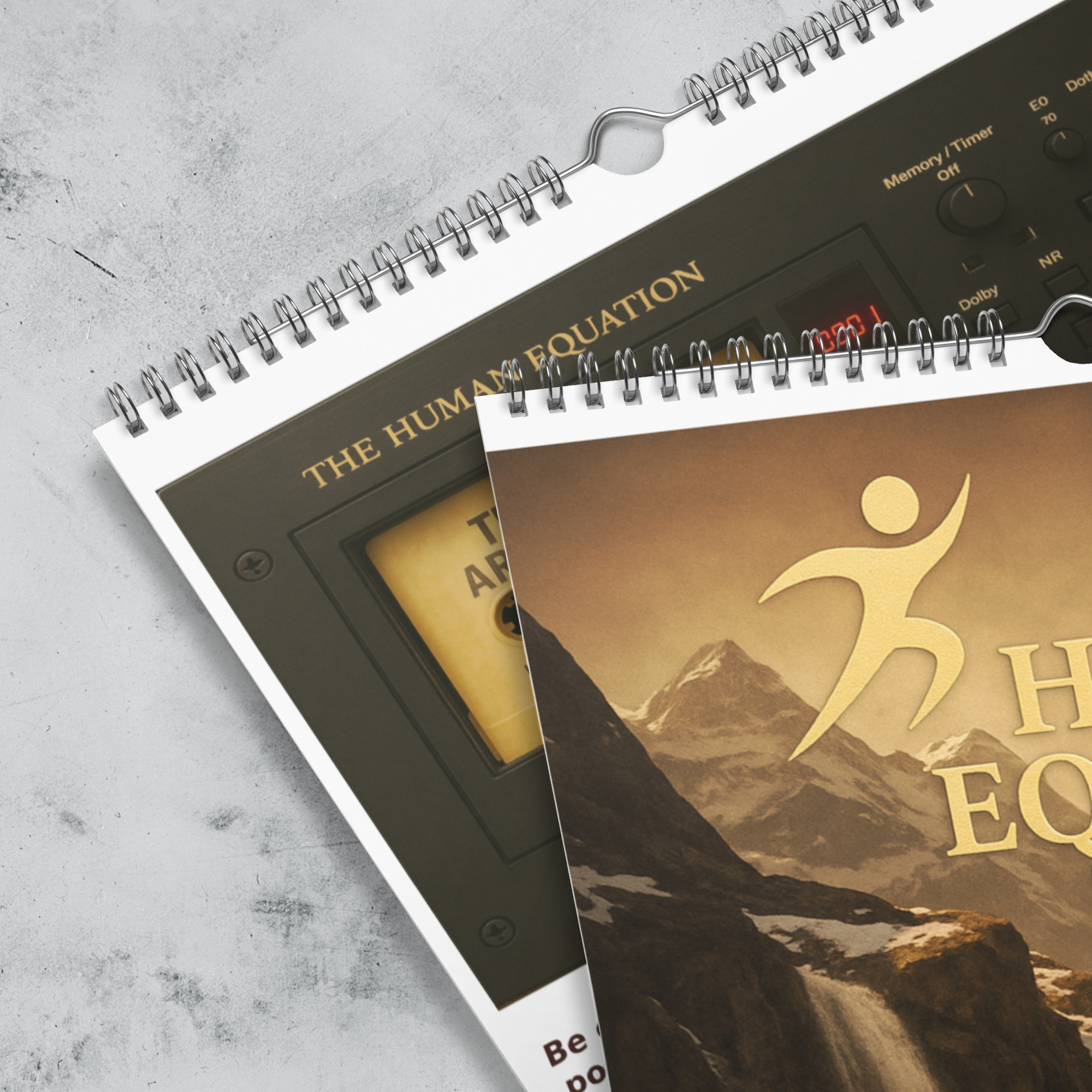 Bring structure and inspiration to every day of 2026 with The Human Equation Tapes Wall Calendar. This beautifully designed 12-month calendar showcases the original cassette artwork from Sensei Kirk Ellis’s legendary lectures, with each month highlighting a unique tape and a carefully selected motivational quote.